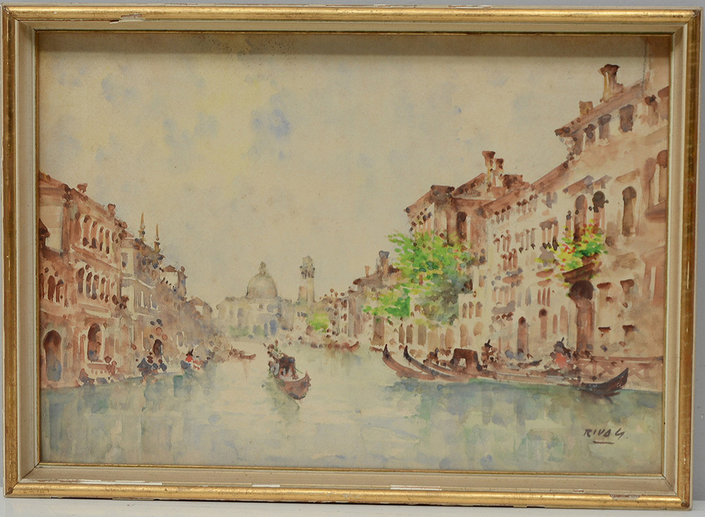 Giovanni Riva (Torino 1890 - 1973) "Canal Grande, Venezia" acquerello (cm 35x50) Firmato in basso a destra. In cornice (difetti)