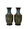 Coppia di vasi in metallo cloissonnÈ decorati in policromia a scene di...