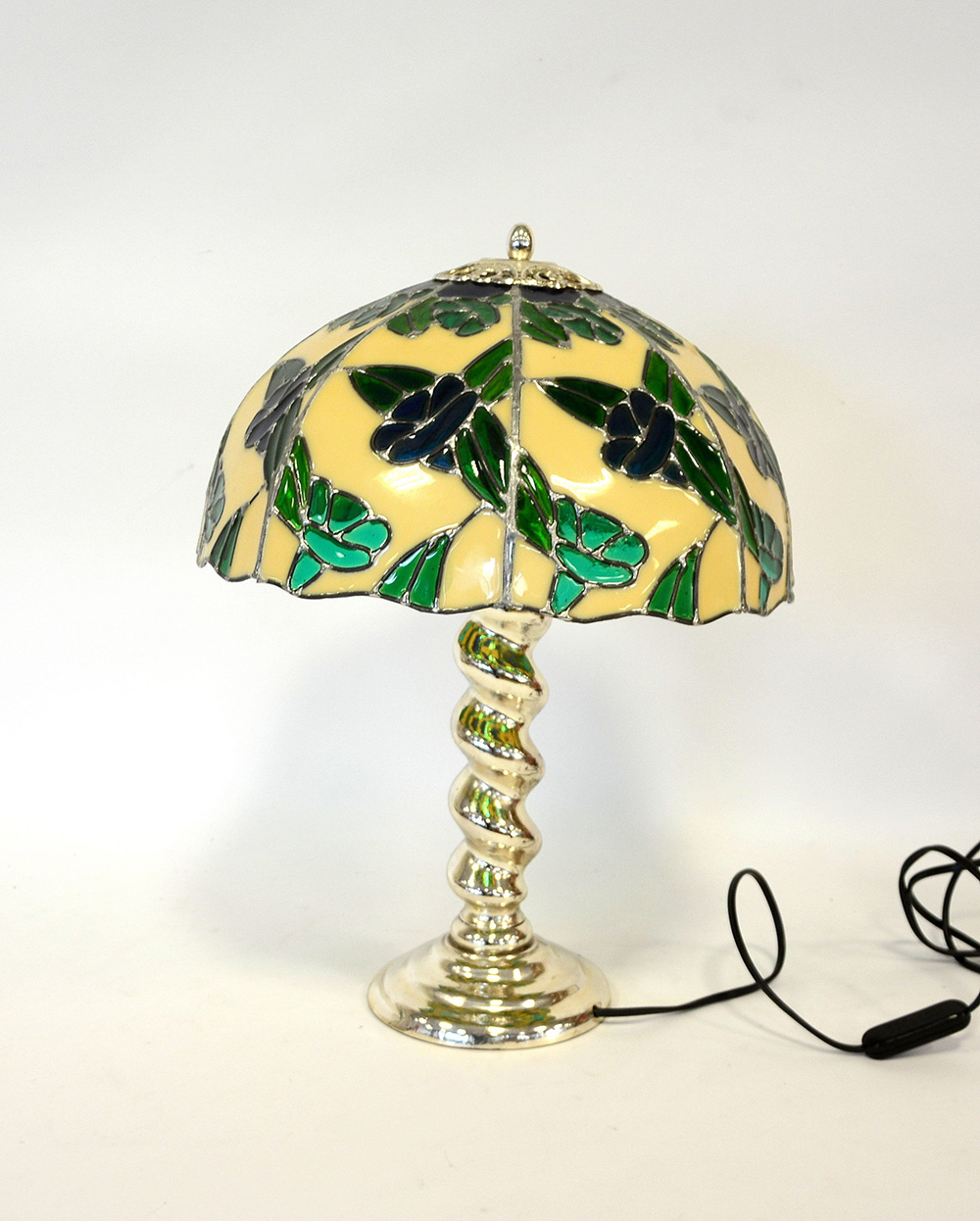 Abat-jour con paralume in vetro legato a piombo. Produzione recente (lievi...