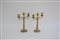 Coppia di candelieri a tre fiamme in ottone decorato a motivi stilizzati....