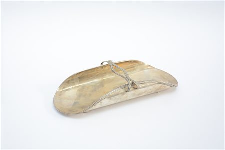 Porta grissini in argento di forma rettangolare sagomata con bordura godronata. Milano, sec. XX. Argentiere Miracoli (lagh. 30 ca.) (gr. 430 ca.) (lievi difetti)