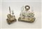 Lotto composto da due servizi da tavolo in metallo argentato con boccette in...