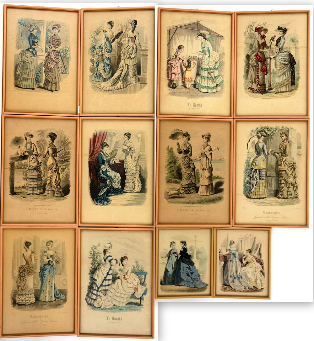 Gruppo di dodici incisioni a colori da "La mode illustrËe" misure diverse (difetti)