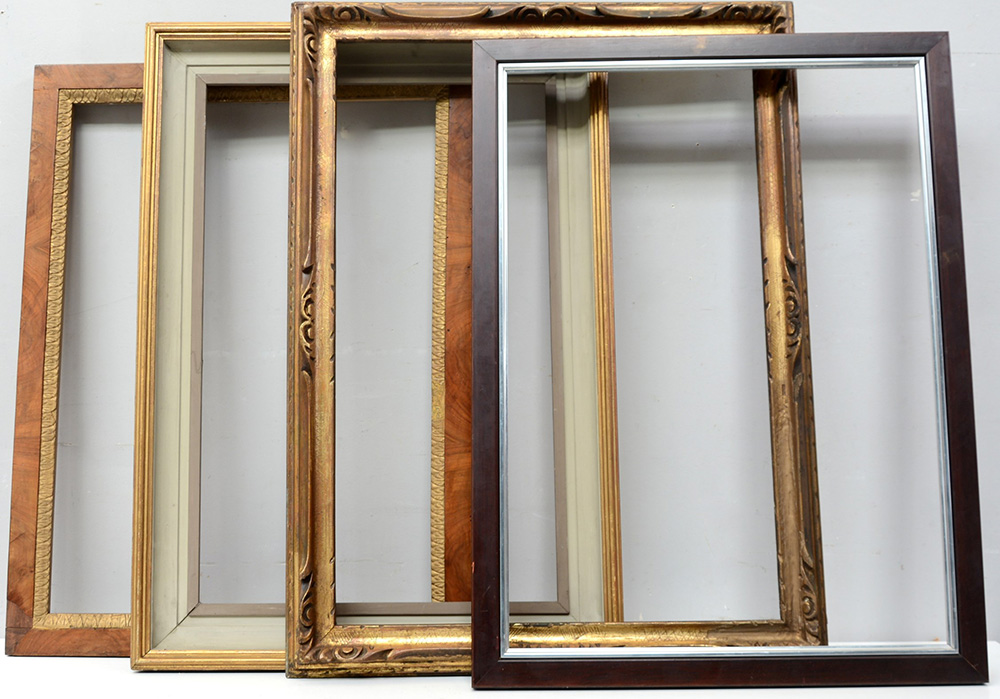Lotto composto da 4 cornici di varie misure e dimensioni in legno (difetti)
