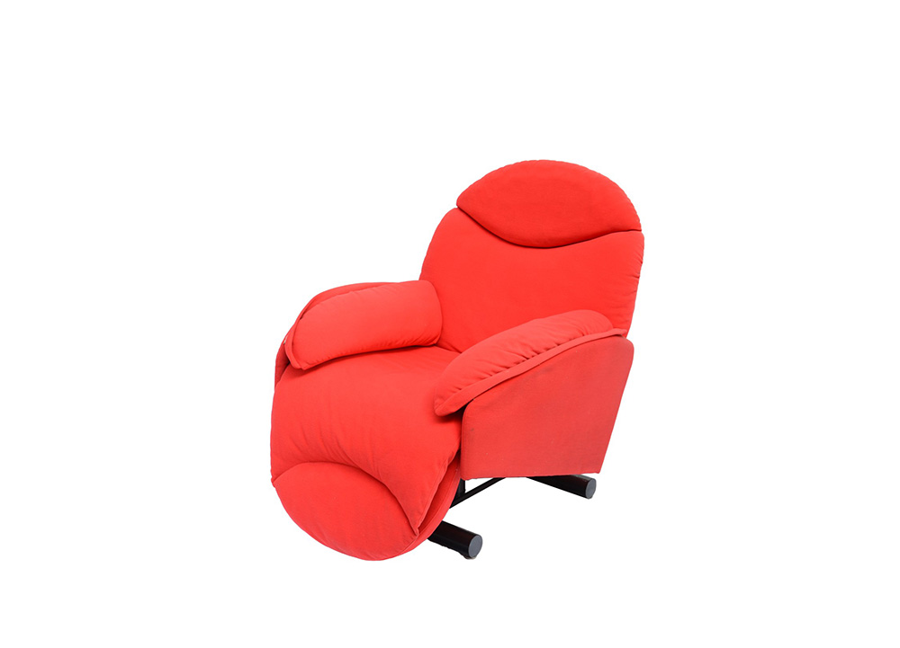 Poltrona da riposo imbottita con struttura in metallo rivestita in tessuto rosso. Italia, anni 90 (lievi difetti)