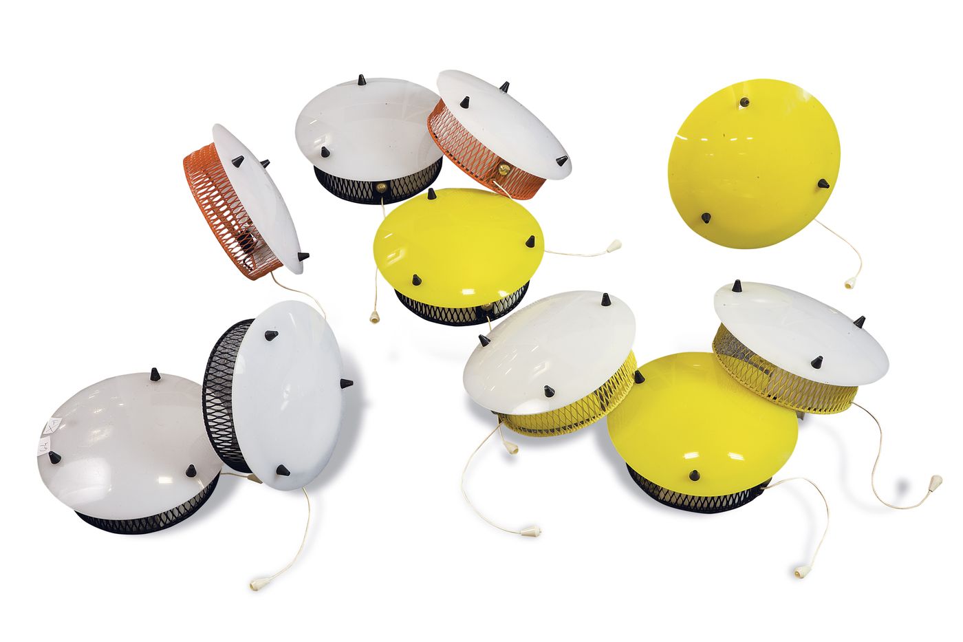 Lotto 652 | APPLIQUES - Dieci appliques in plexiglass opalino e rete metallica. Prod....