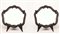 Coppia di specchierine con cornici sagomate in legno di noce intagliato a...