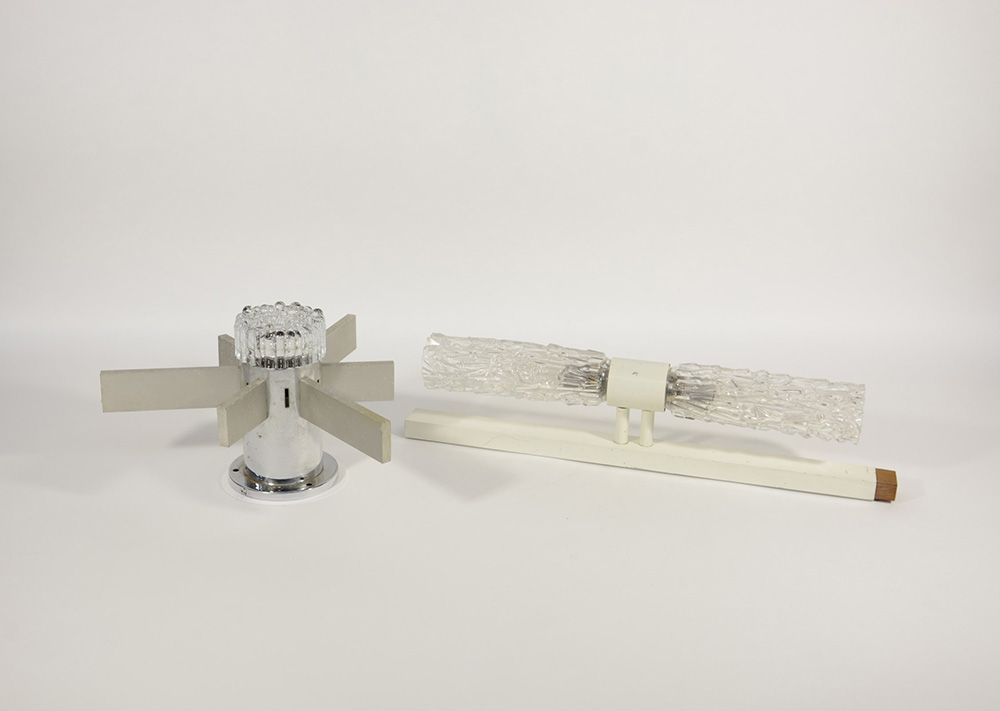 Lotto composto da due appliques in metallo e vetro. Anni 70 (lievi difetti)
