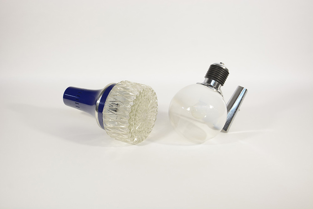 Lotto composto da una applique Targetti ed da un lampadarietto in metallo e vetro (lievi difetti)
