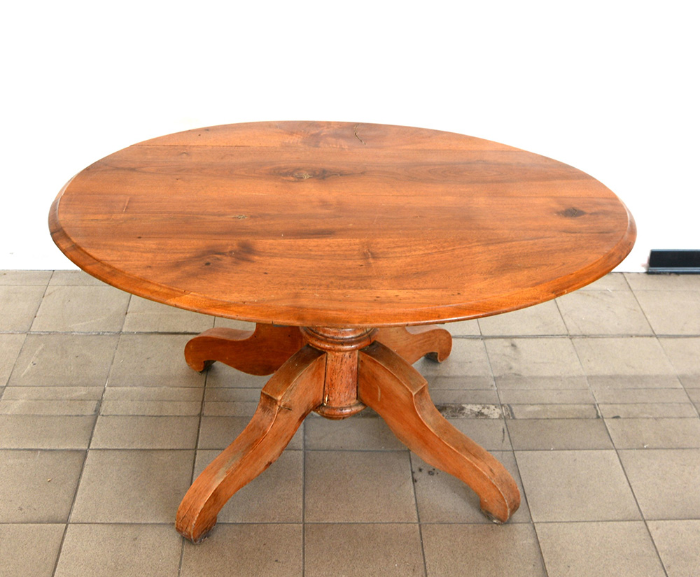 Tavolino da salotto con piano ovale su base quadripode (cm 100x50x74) (difetti e parti non pertinenti)