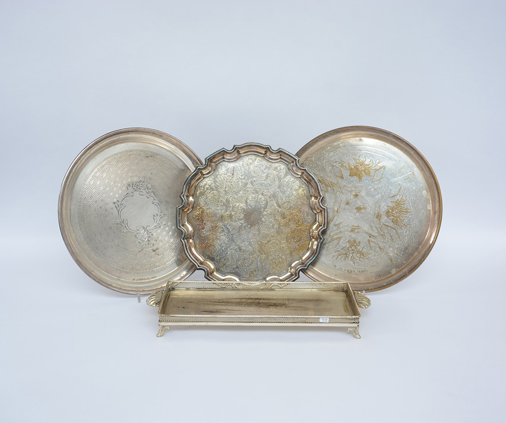 Lotto composto da quattro vassoio in metallo di forme diverse (difetti)