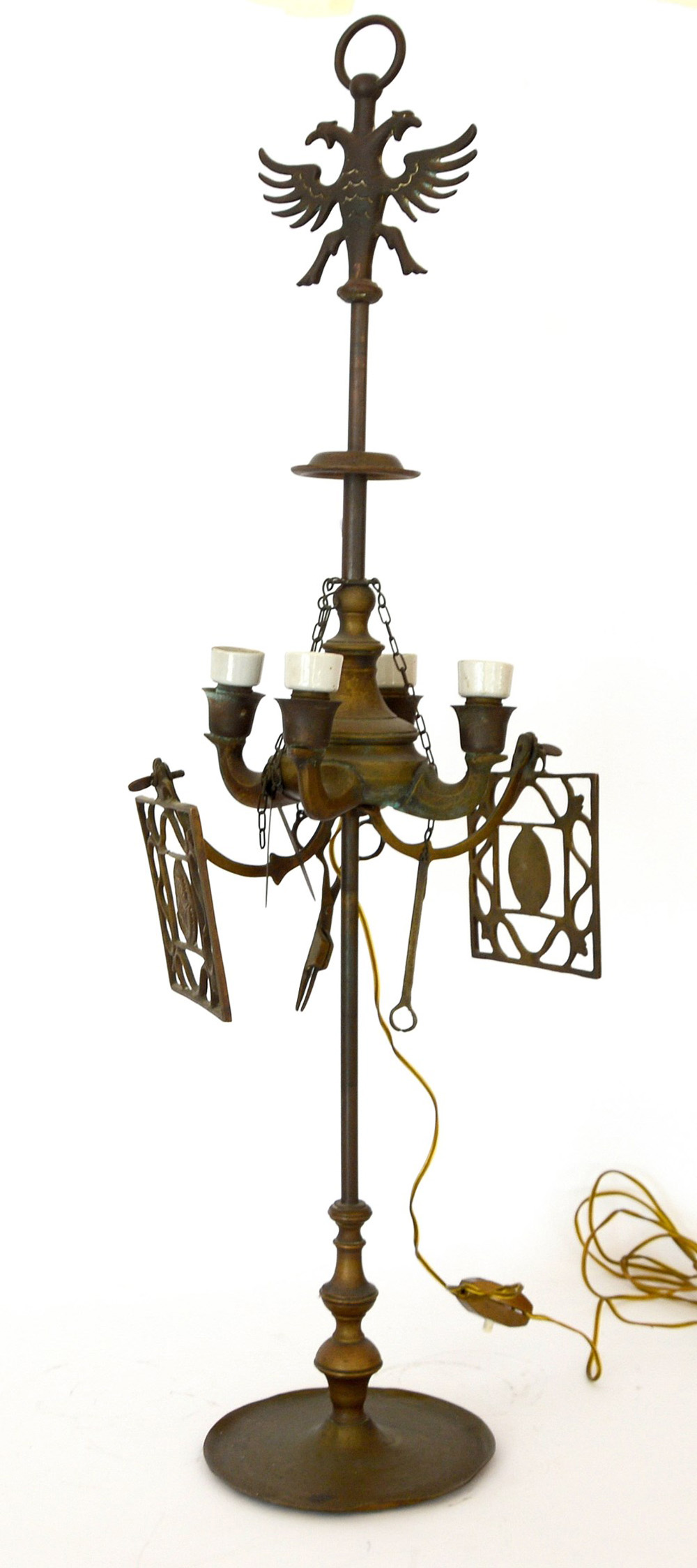 Lampada fiorentina in bronzo a quattro fiamme montata a luce elettrica (h cm...