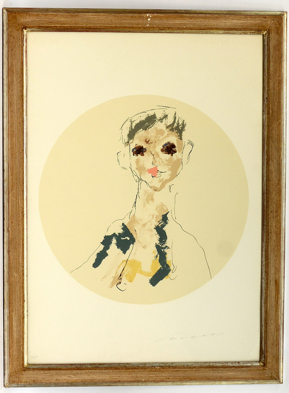 Litografia moderna raffigurante bambino firmata in basso a destra, in cornice