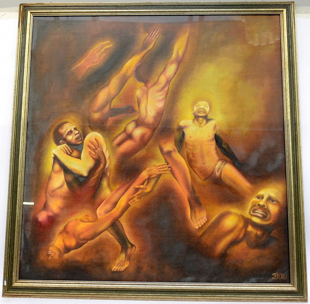Gianfranco D'AlÚ "Anelito" tecnica mista su tela (cm 106x101) firmato in basso a destra, cartiglio del pittore con titolo al verso, in cornice (lievi difetti)