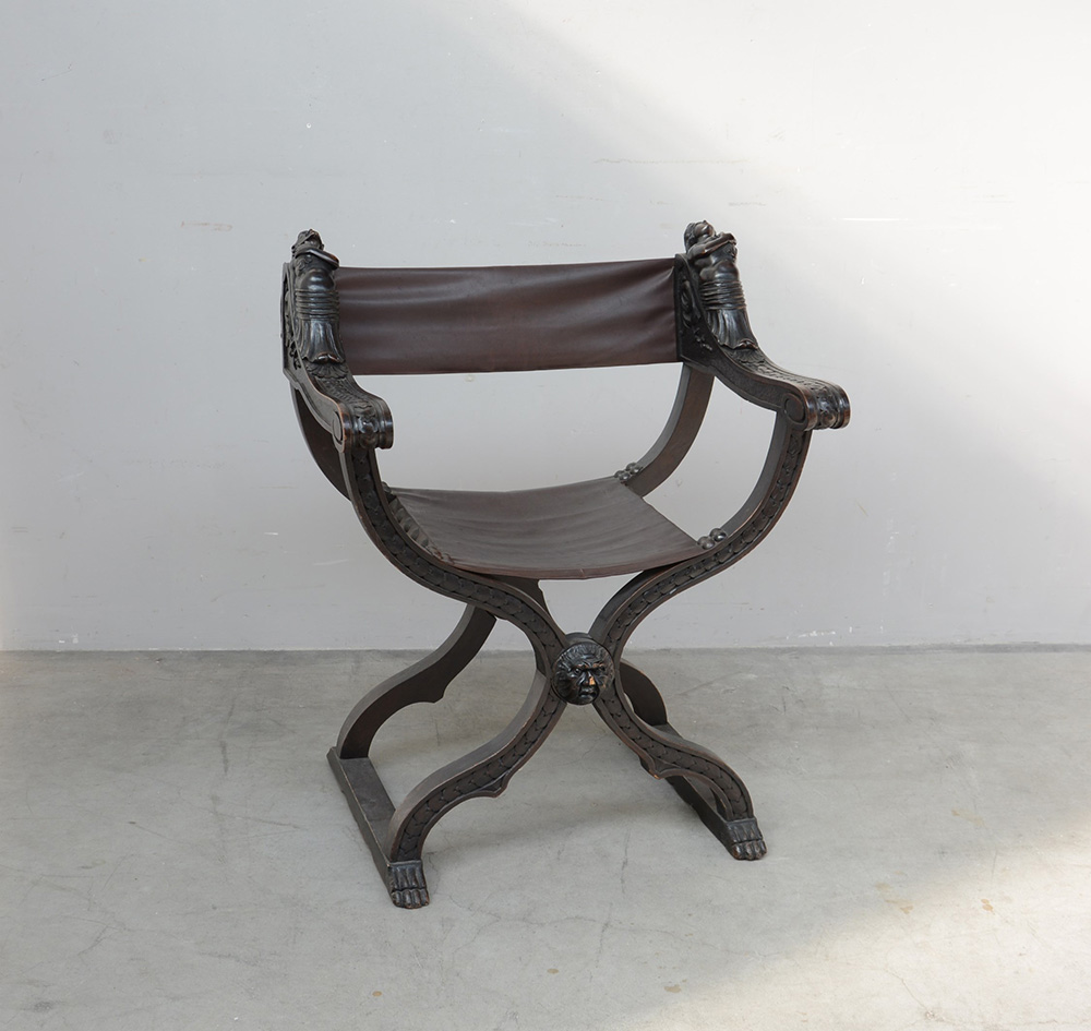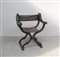 Poltrona "savonarola" con braccioli sagomati e intagliati con figura...
