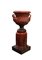 Ceramiche Massier - Grande vaso biansato in ceramica color aramanto, con mascheroni e corpo piriforme, retto da colonna "en suite" su basamento a plinto, marcato sotto la base del vaso Jerome Massier, Vallauris (lievi difetti)