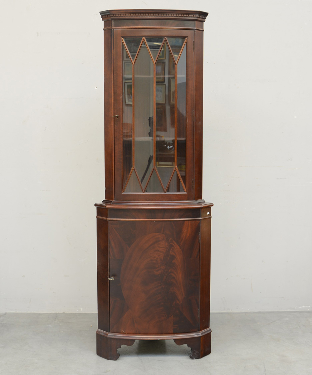 Lotto 2343 | Angoliera a due corpi, parte superiore ad un'anta a vetri, parte inferiore...