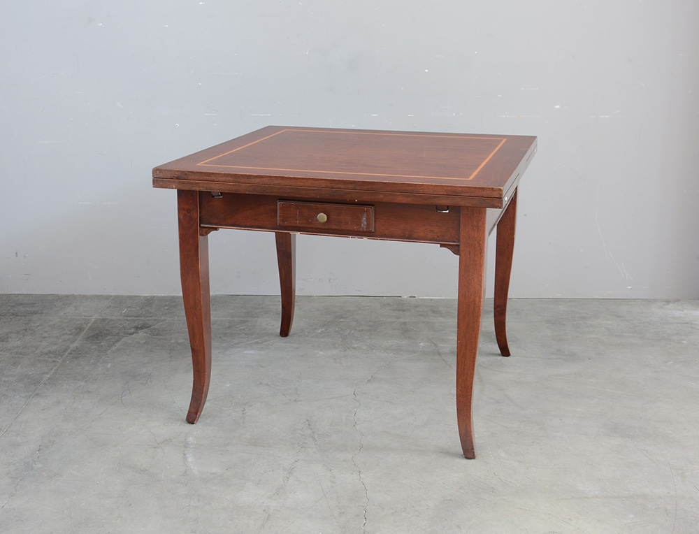 Tavolo quadrato allungabile in mogano con piano filettato, gambe sagomate (cm 100x80x100)(difetti)
