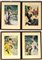 Lotto di quattro litografie raffiguranti mademoiselle con monumenti parigini,...