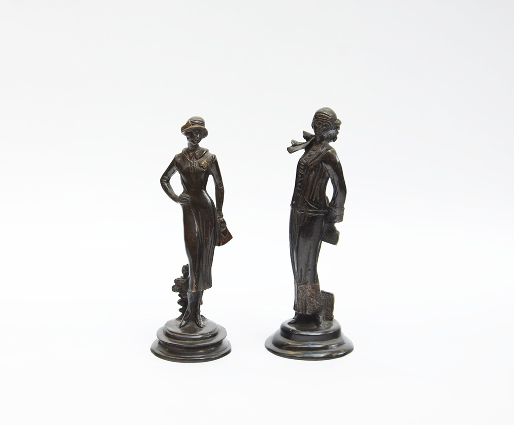 Lotto di due multipli in bronzo raffiguranti figure femminili alla moda,...