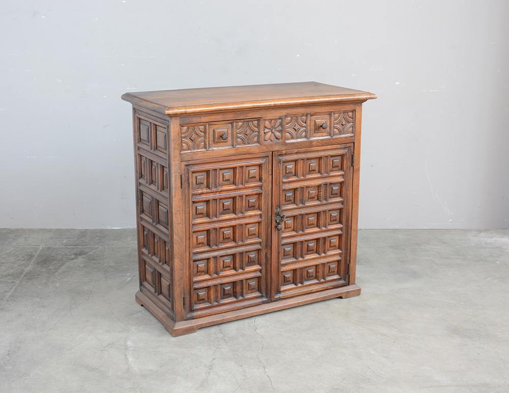 Mobile basso con fronte e fianchi riqaudrati e pannellati a due cassetti sottopiano e due ante (cm 95x90x44)