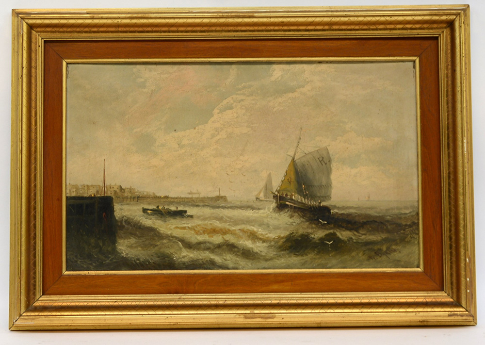 Lotto 2402 | Byron W. "Marina con porto", olio su tela (cm 30,5x51) firmato in basso a...