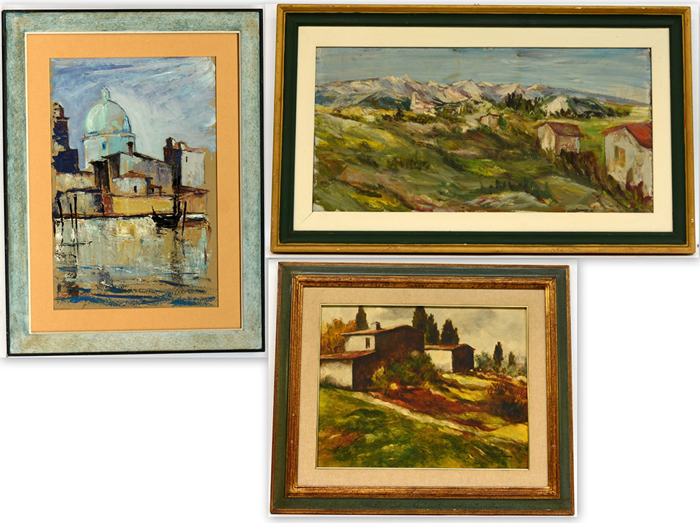 Lotto 2406 | Lotto composto da tre dipinti ad olio di autori, soggetti e misure diverse,...