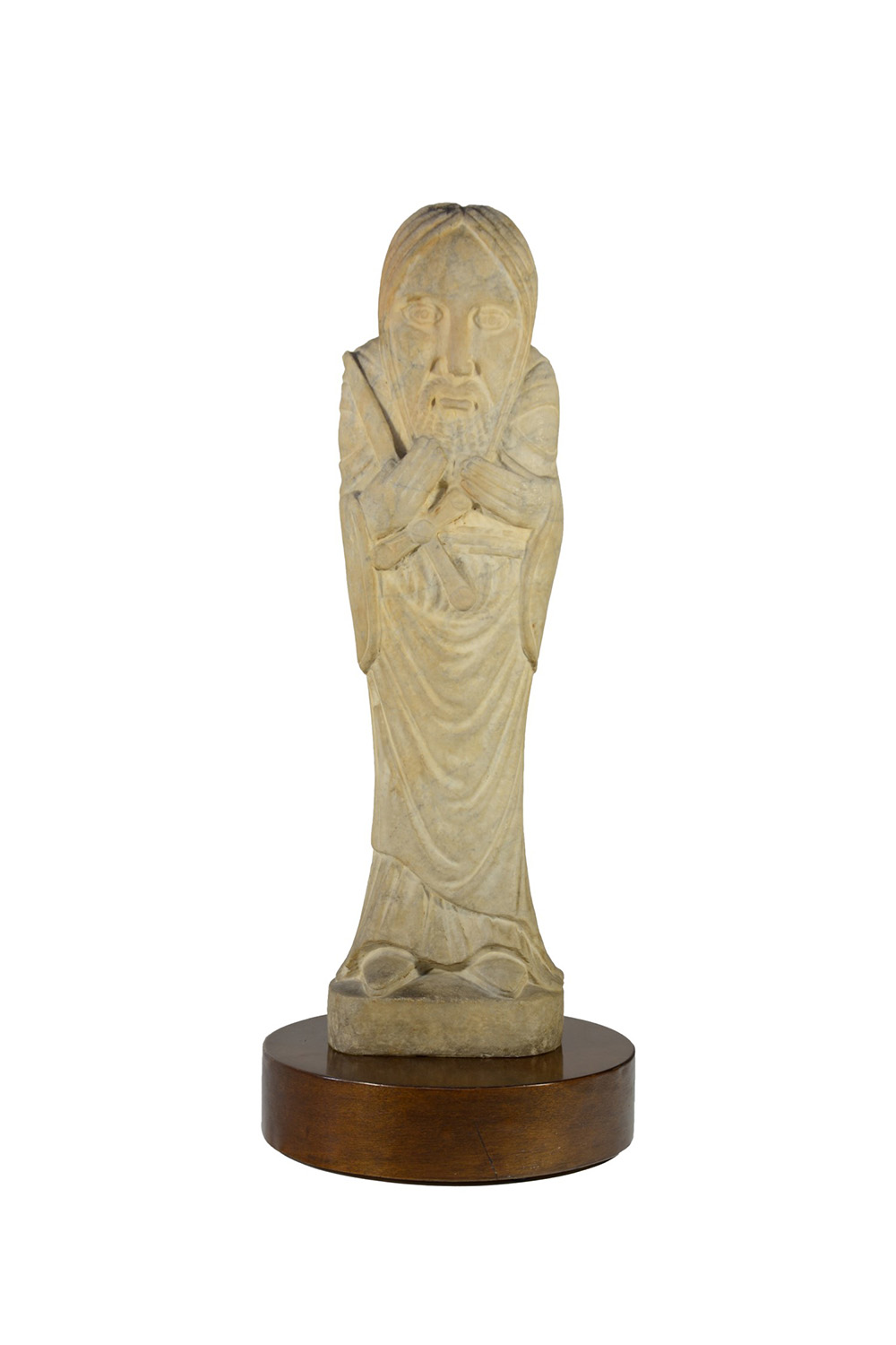 Ignoto, scultura in pietra raffigurante una figura maschile col pugnale (h cm 71)