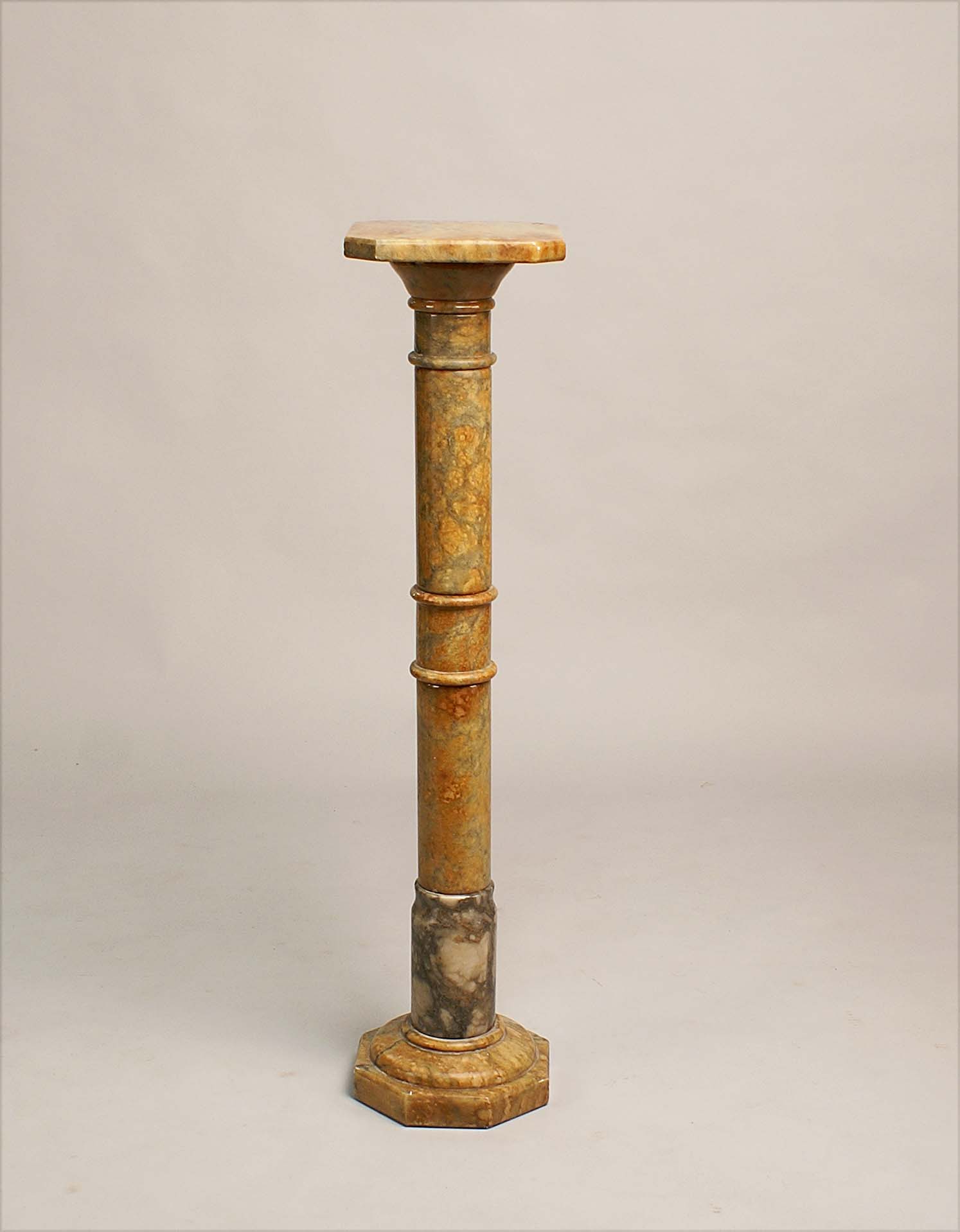 Colonna in onice poggiante su base ottagonale, vecchia manifattura, h. cm. 98.