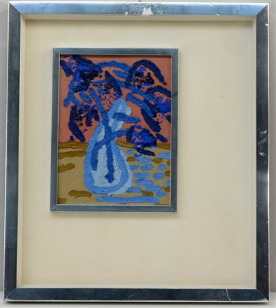 Firma indecifrata, "Vaso con fiori" 1975, tecnica mista su tela (cm 24x18) ,...