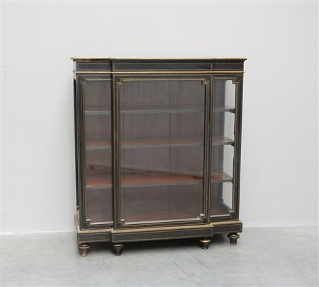 Vetrina in legno ebanizzato, filettata in ottone, con anta a vetri sul...