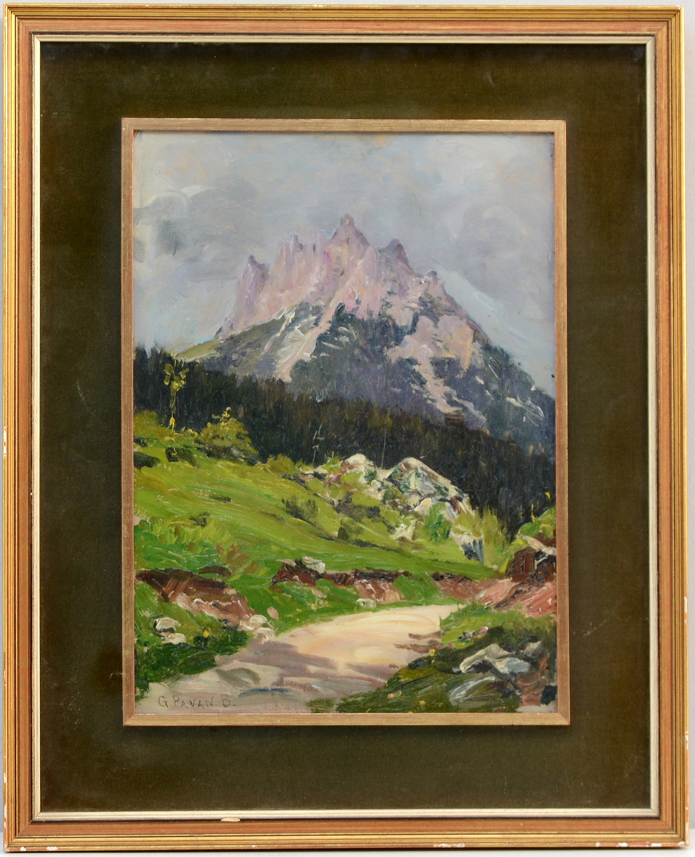Pavan "Paesaggio montanio" olio su cartone (cm 37x27) firmato in basso a sinistra. In cornice