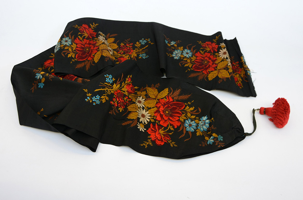 Jaquard in seta con mazzi di fiori policromi su fondo nero. Europa, fine sec....
