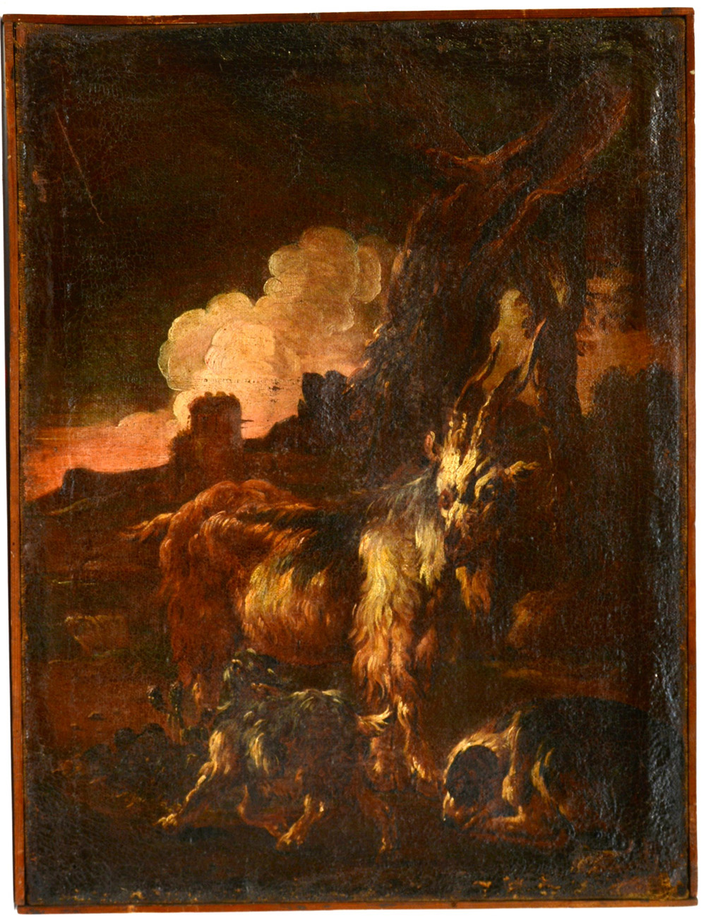 Scuola del secolo XVII "Caprone", olio su tela (cm 74x56) Sul retro vecchia iscrizione "Rosa da Tivoli dipinse"