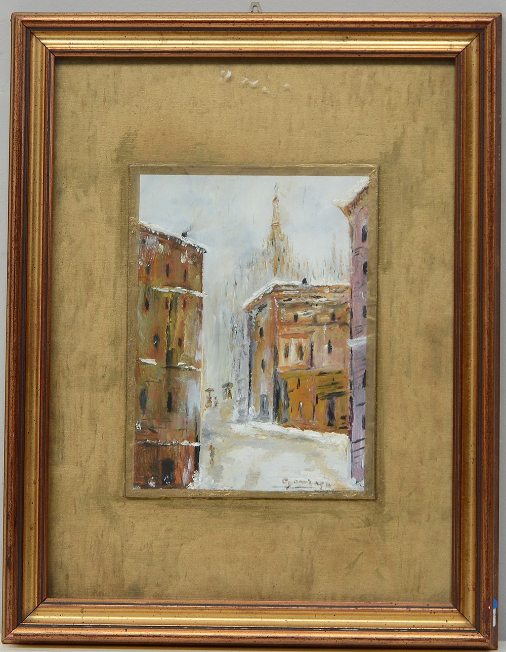 Lotto 2485 | Firma indecifrata, "Vecchia Milano, via Laghetto", olio su carta (cm 23,5x18)...
