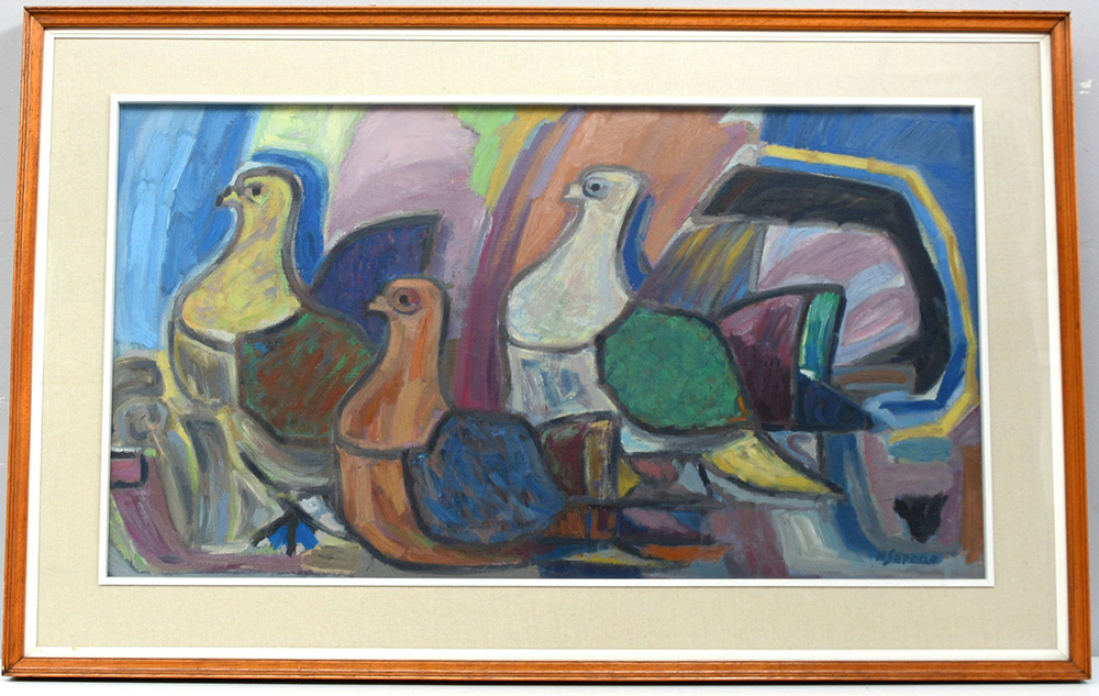 Lotto 2492 | Sapone N. "Uccelli" olio su tela (cm 48x87) firmato in basso a destra. In...