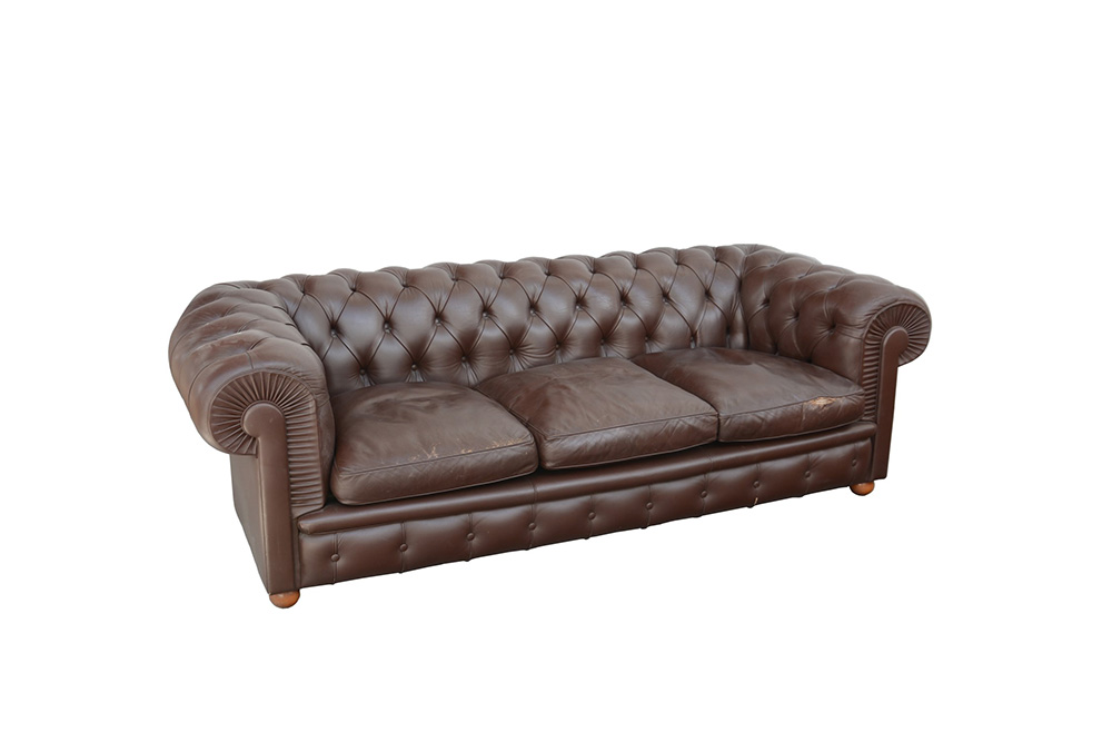 Divano a tre posti in pelle capitonnÈ color tabacco, modello Chester....