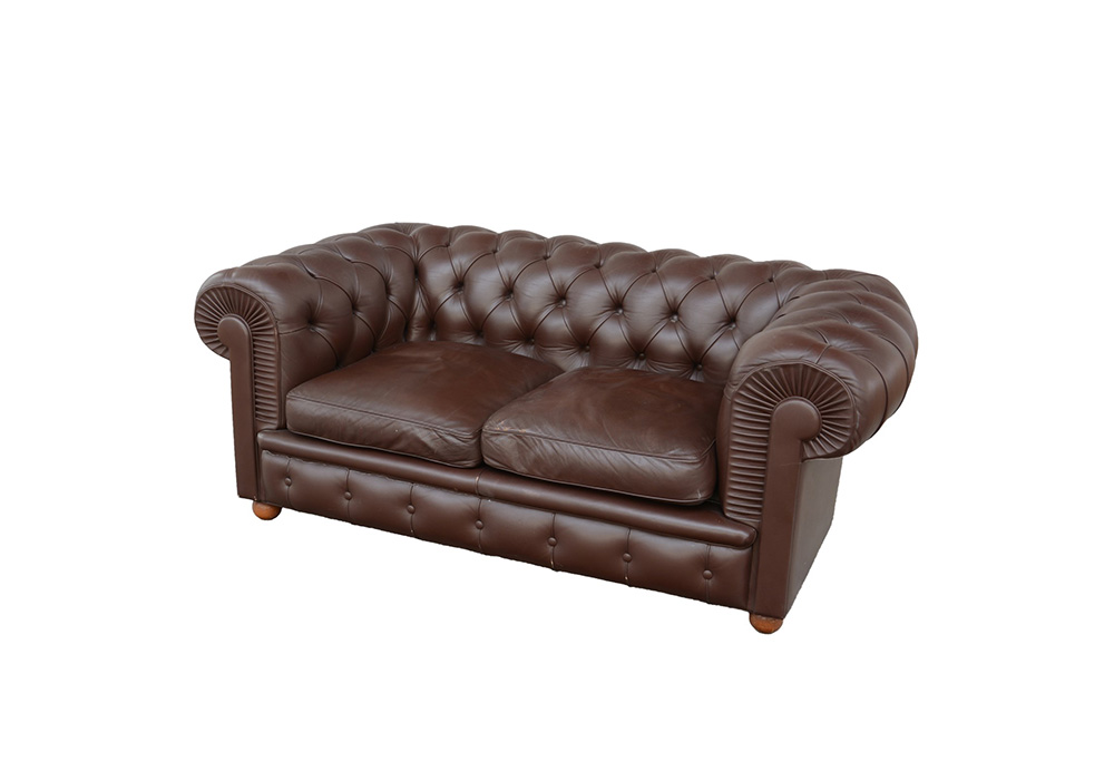 Divano a due posti in pelle capitonnÈ color tabacco, modello Chester....