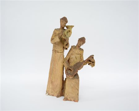 Berzoni "Frati suonatori" gruppo in terracotta firmato sul retro (difetti e mancanze)