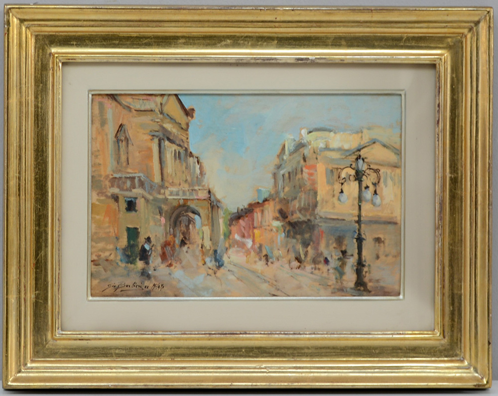 Lotto 2513 | Barbieri Gio "Piazza della Scala a Milano", olio magro su compensato (cm...