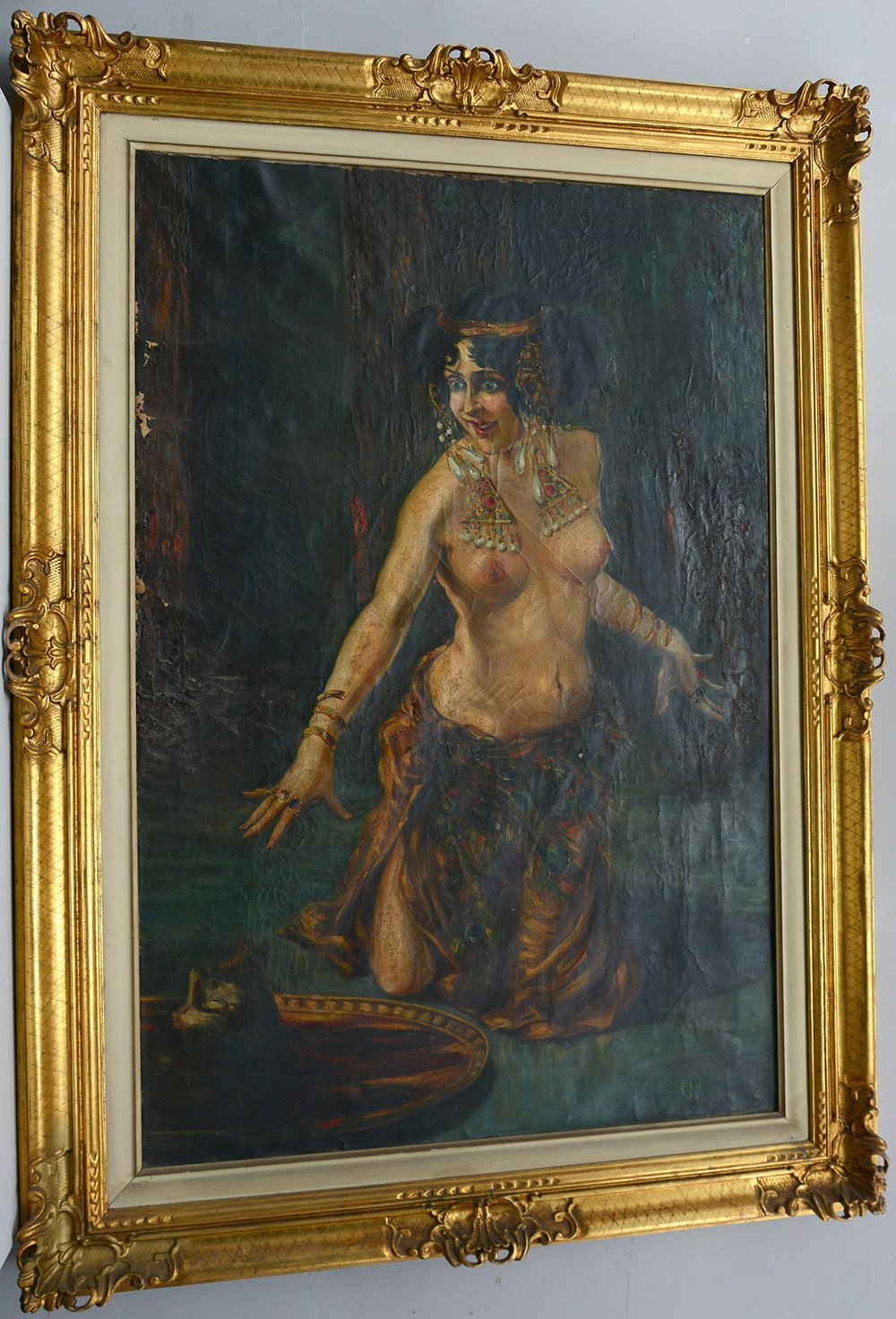 Ignoto "SalomË con la testa di Giovanni Battista" olio su tela (cm 102x87) monogrammata in basso a destra. In cornice (gravi difetti)
