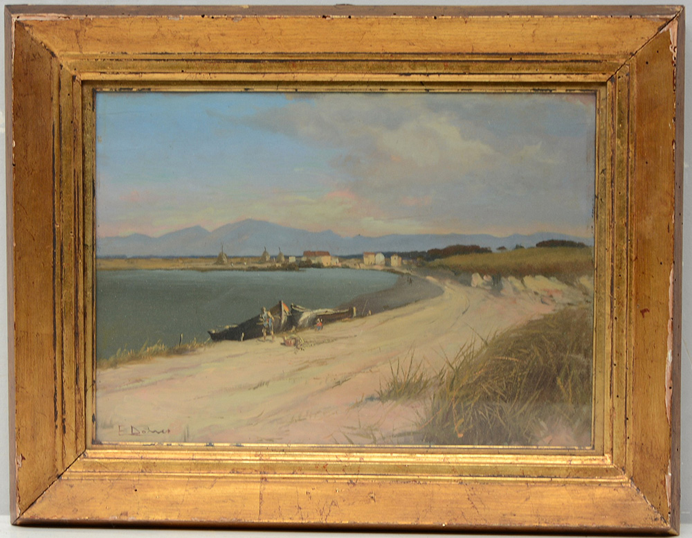 Firma indecifrata, "Scorcio di spiaggia", olio su tavola (cm 27x39) firmato in basso a sinistra, in cornice