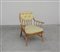 Poltroncina in legno di faggio con struttura a listelli torniti e cuscini...