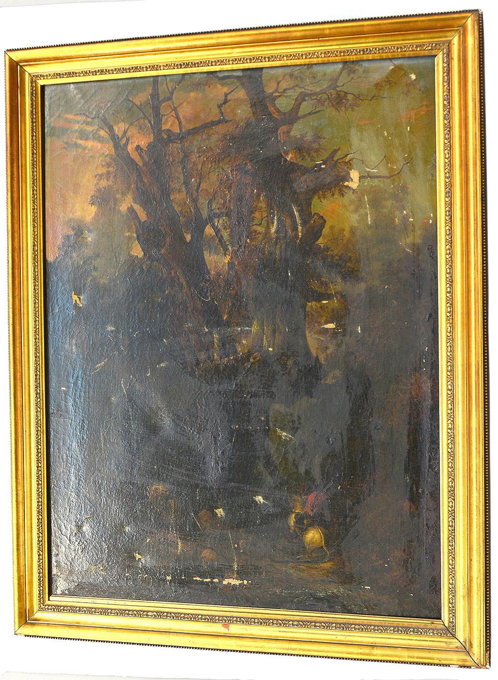 Lotto 2545 | Ignoto, "Paesaggio boschivo", olio su tela (cm 104x78) (gravi difetti e...