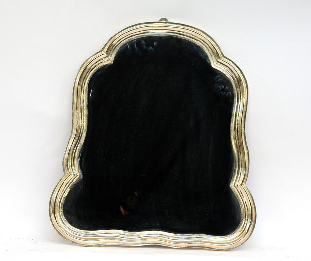 Specchierina di forma sagomata con bordo in metallo argentato (cm 55x50)