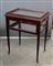 Tavolino vetrina con piano a vossoio biansato, gambe sagomate terminanti con...