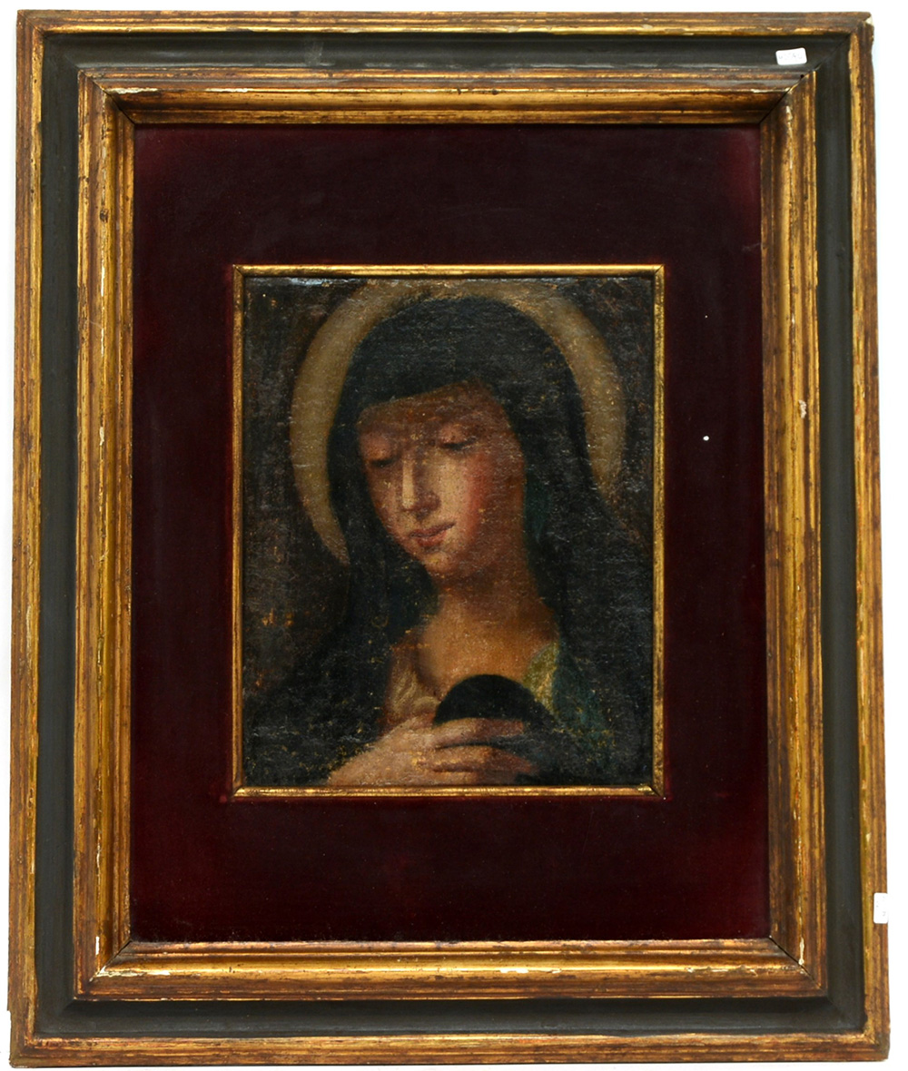 Lotto 2596 | Ignoto "Madonna" olio su tela (cm 30x24) in cornice (difetti)