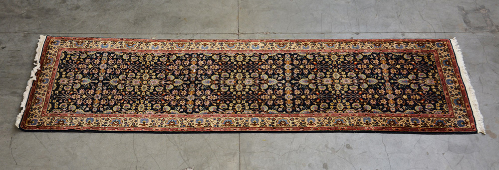 Lotto 2600 | Tappeto Rumeno annodato a mano sec.XX. Disegno floreale su fondo blu (cm...