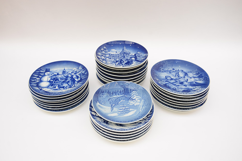 Lotto 2606 | Cartone contenente numerosi piatti in porcellana bianca e blu (difetti)