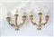 Coppia di appliques a tre luci in legno laccato e dorato, intagliato a volute. Sec. XIX (montate a luce elettrica in epoca posteriore) (difetti)